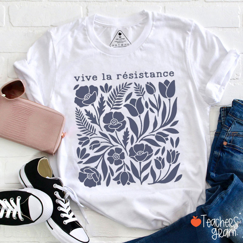 Vive La Résistance Floral Pattern Teacher T-Shirt