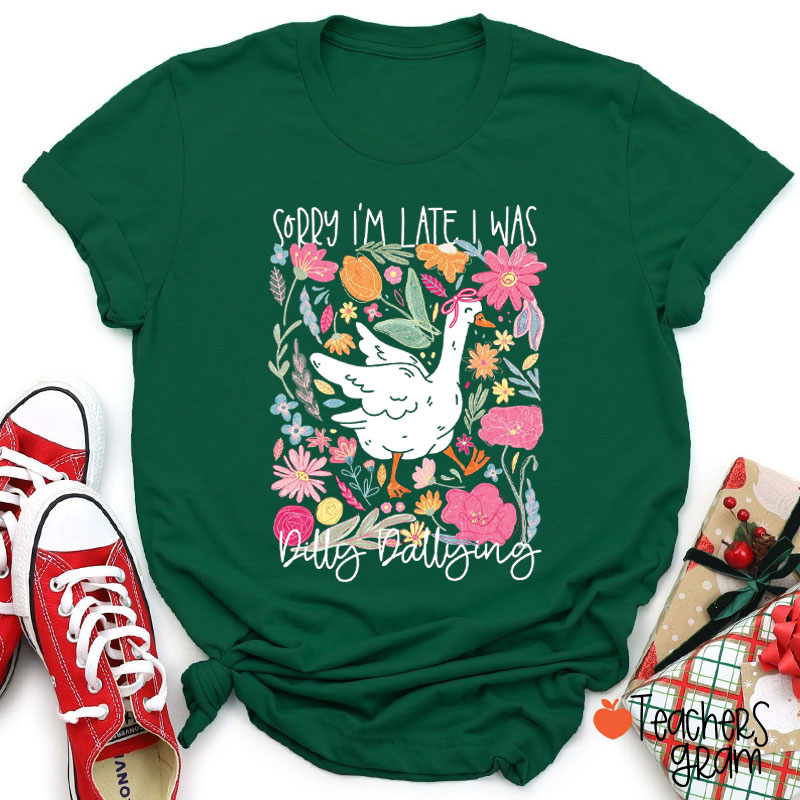 Silly Goose Sorry I'm Late I Was Dilly Dallying Teacher T-Shirt