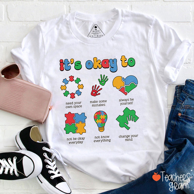It's Okay Autism Awareness Puzzle Teacher T-Shirt