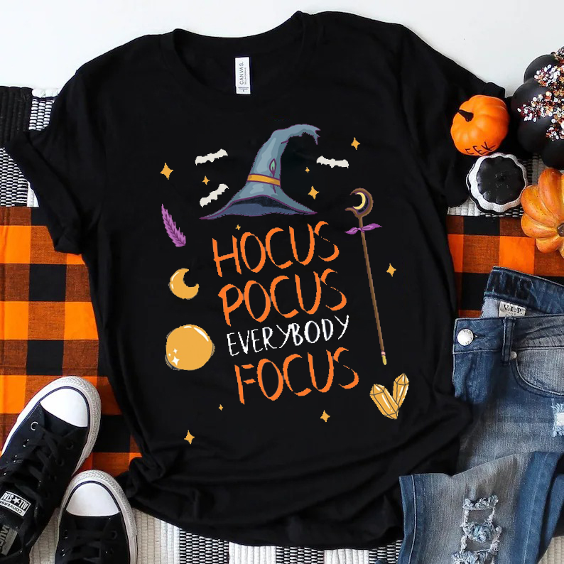 Hocus Pocus Everybody Focus Magic Hat And Wand T-Shirt