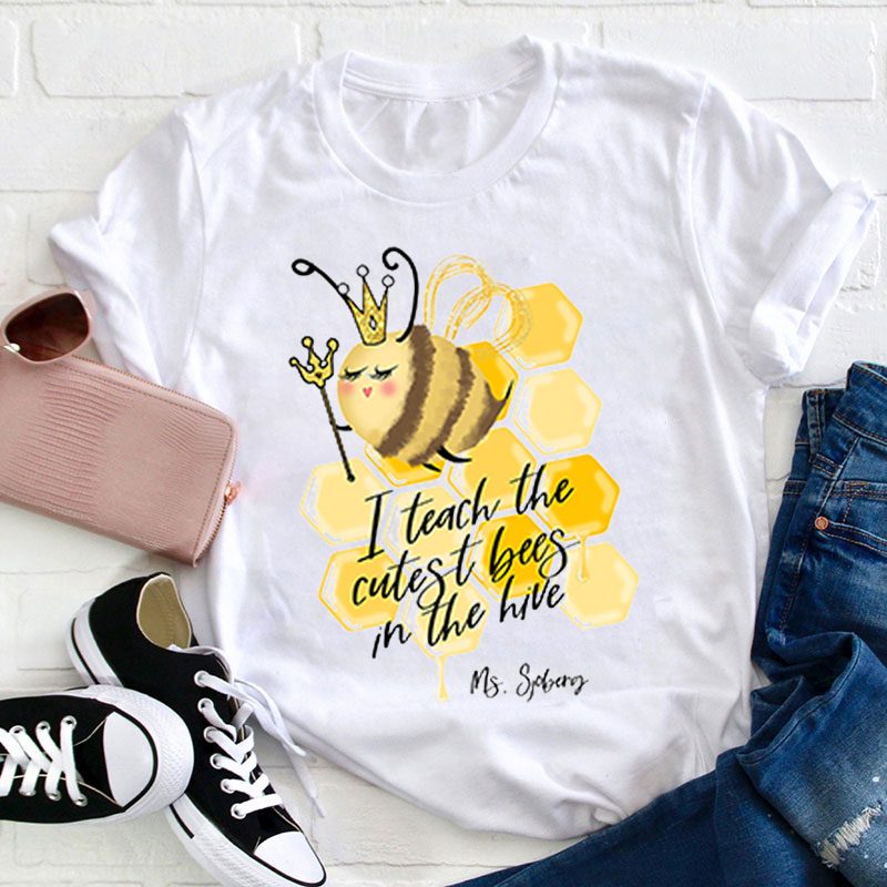 Personalized Teacher's Name I Teach The Cutest Bees In The Hive Teacher T-Shirt