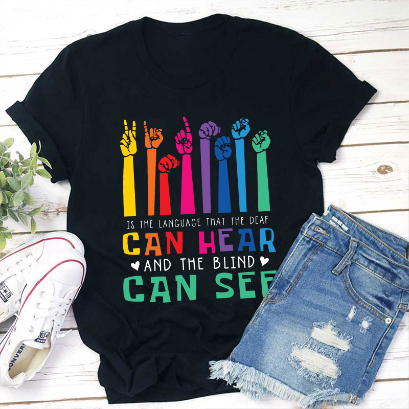 Is The Language That The Deaf Can Hear And The Blind Can See Teacher T-Shirt