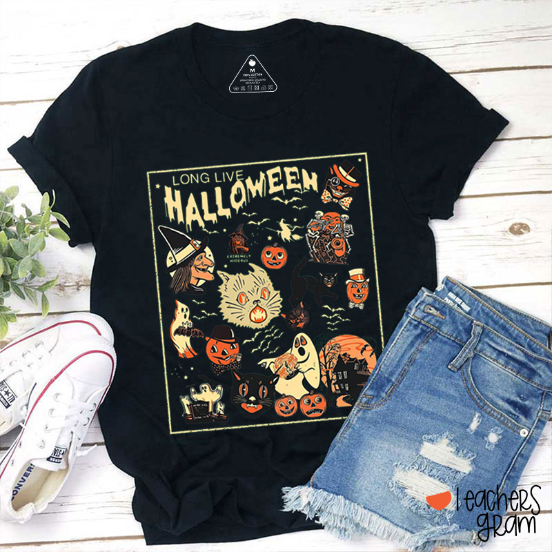 Long Live Halloween Pumpkin Black Cat Teacher T-Shirt