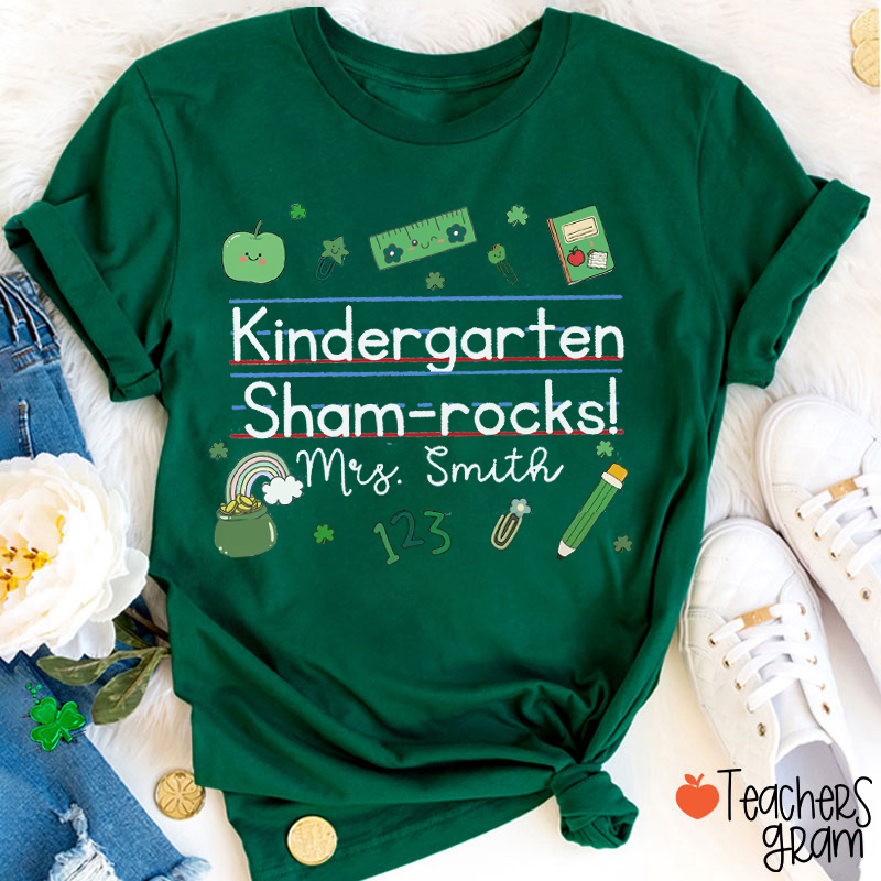 Personalized Name And Grade Sham-rocks St Patricks Day Teacher T-Shirt