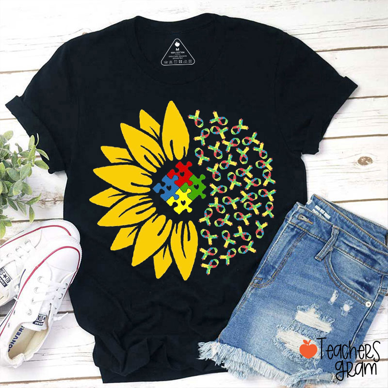 Autism Acceptance FLoral Puzzle Teacher T-Shirt