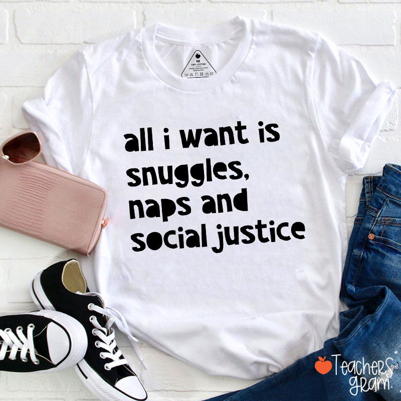 All I Want Is Snuggles Naps And Social Justice Teacher T-Shirt