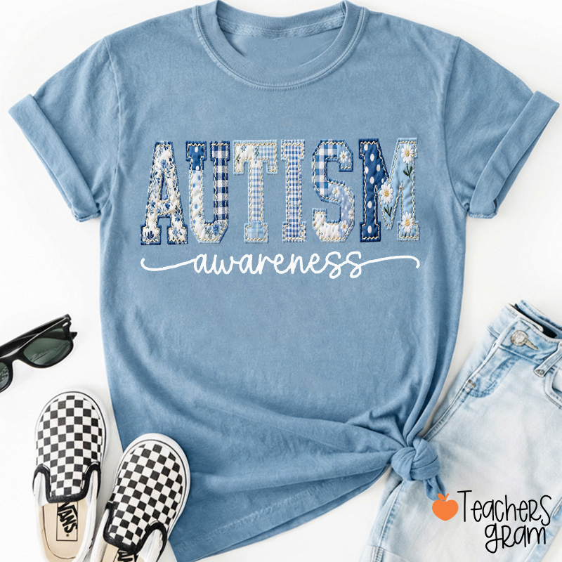 Faux Patchwork Autism Awareness Teacher T-Shirt