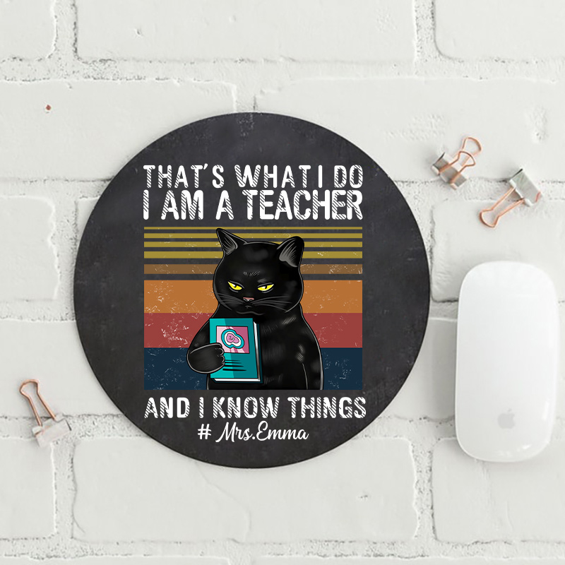 Personalized I Am A Teacher And I Know Things Round Mouse Pad