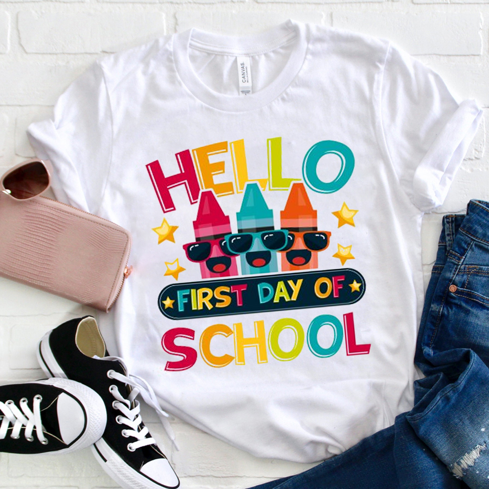 Hello First Day Of School Crayons Wearing Glasses T-Shirt