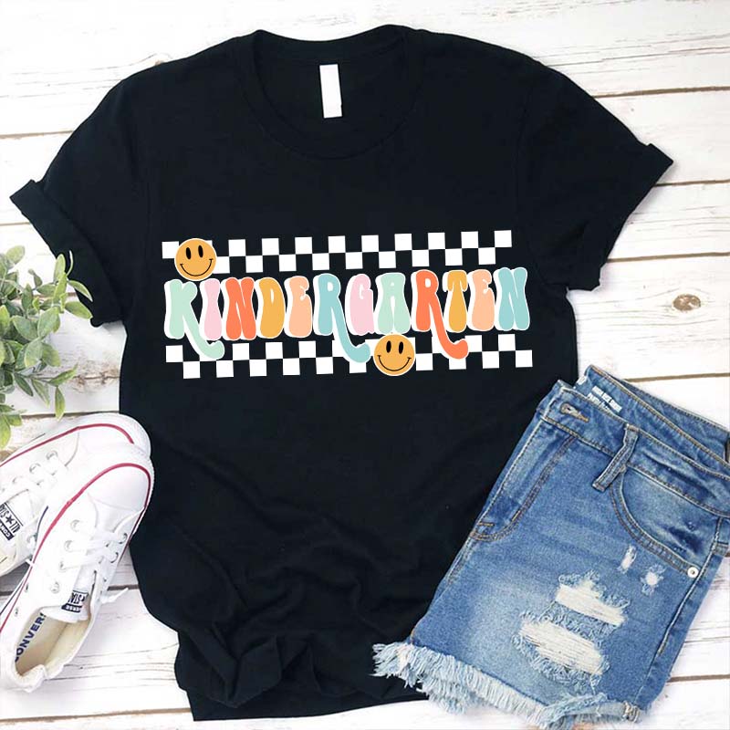 Personalized Grade Black And White Checkerboard Grid Teacher T-Shirt