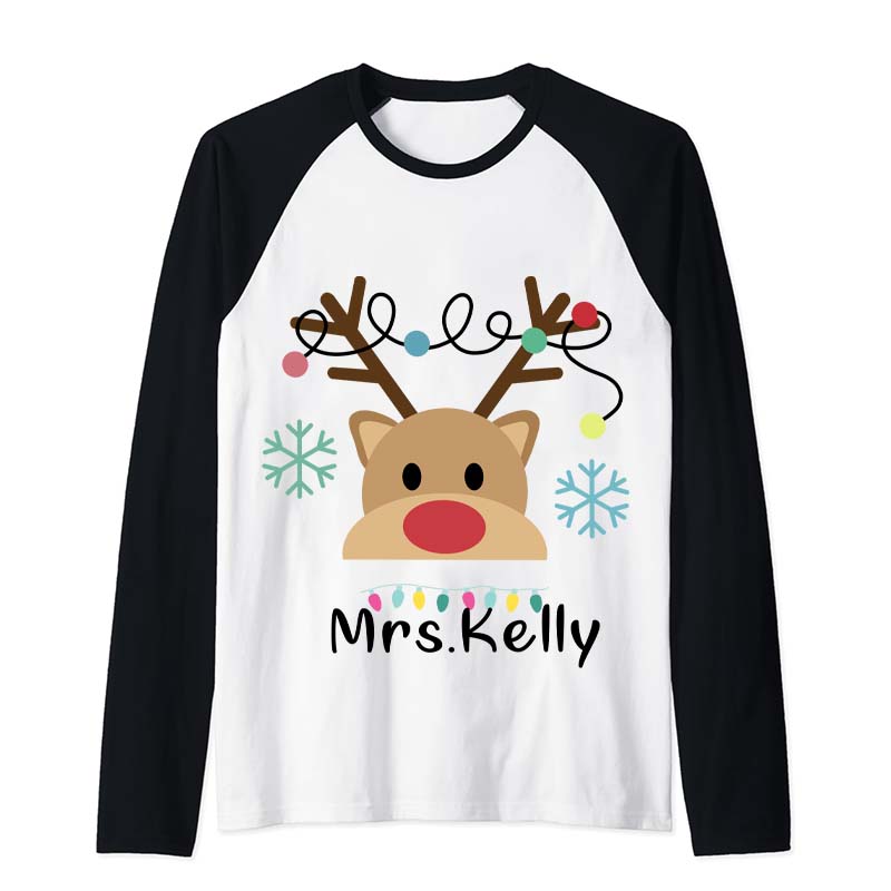 Personalized Merry Christmas Teacher Raglan Long Sleeve T-Shirt