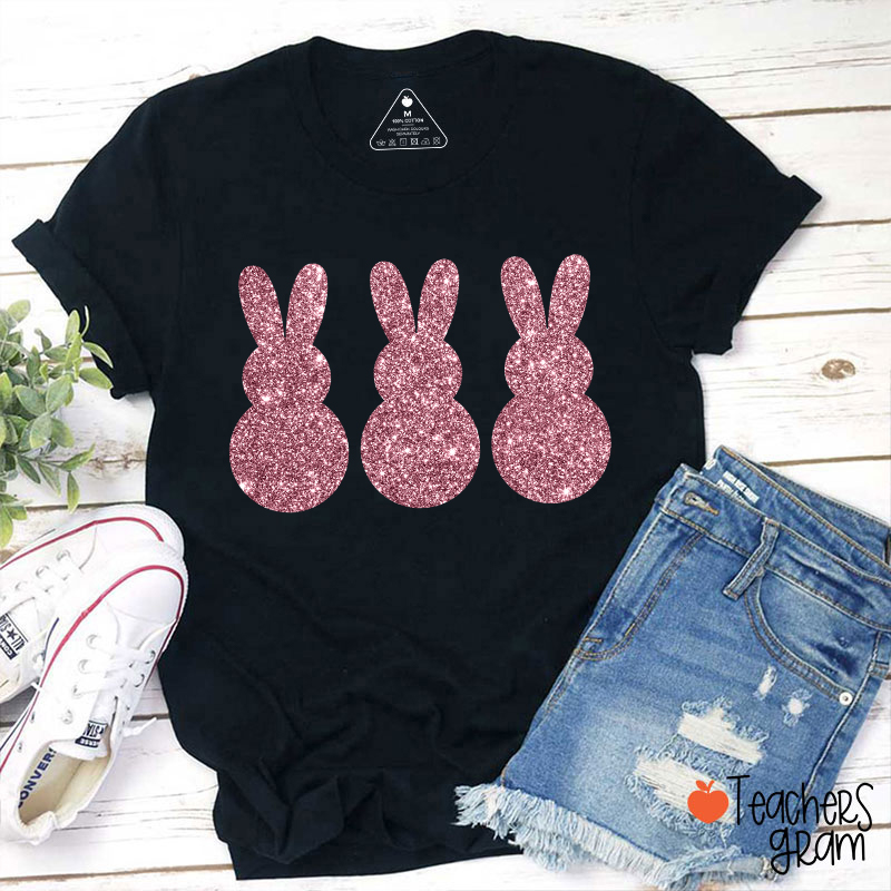 Three Glitter Cute Bunnies Teacher T-Shirt