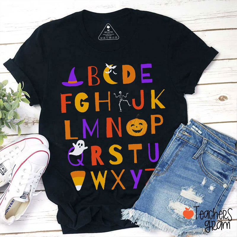 Skull Ghost Pumpkin Alphabet Teacher T-Shirt