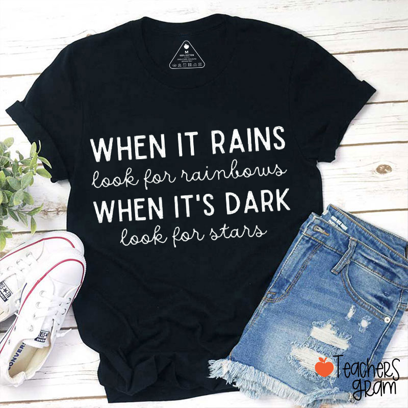When It Rains Look For Rainbows When It's Dark Look For Stars Teacher T-Shirt