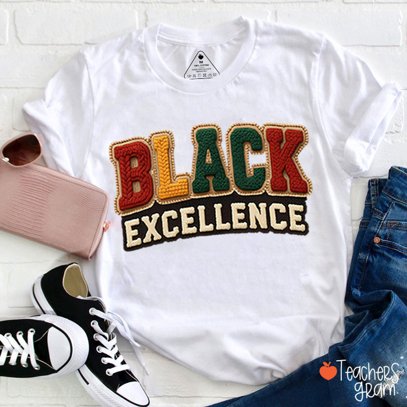 Faux Yarn Black Excellence Teacher T-Shirt