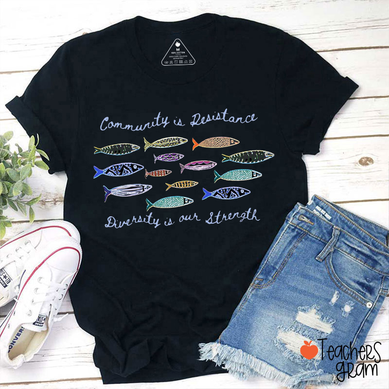 Community Is Resistance Diversity Is Our Strength Teacher T-Shirt