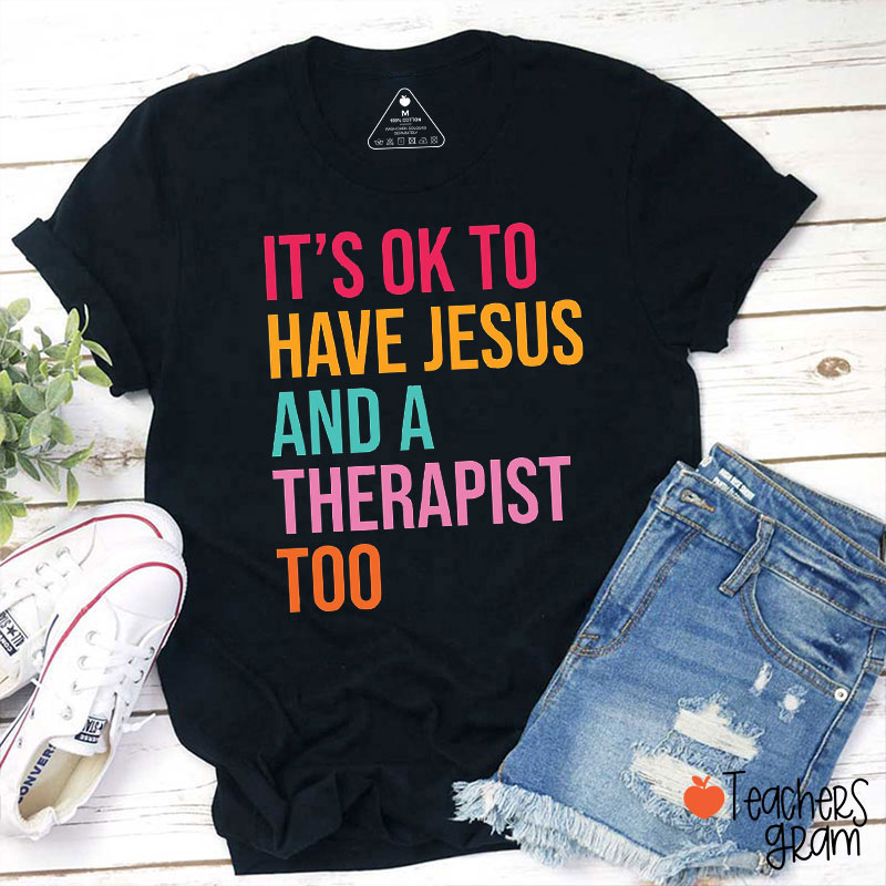 It's Ok To Have Jesus And A Therapist Too Teacher T-Shirt