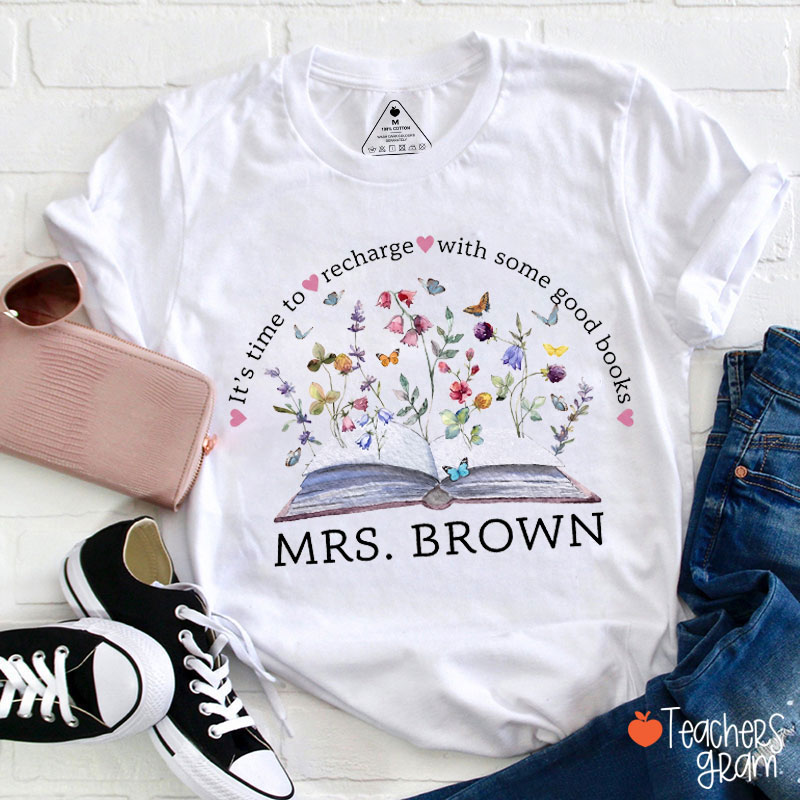 Personalized Name It's Time To Recharge With Some Good Books Teacher T-Shirt