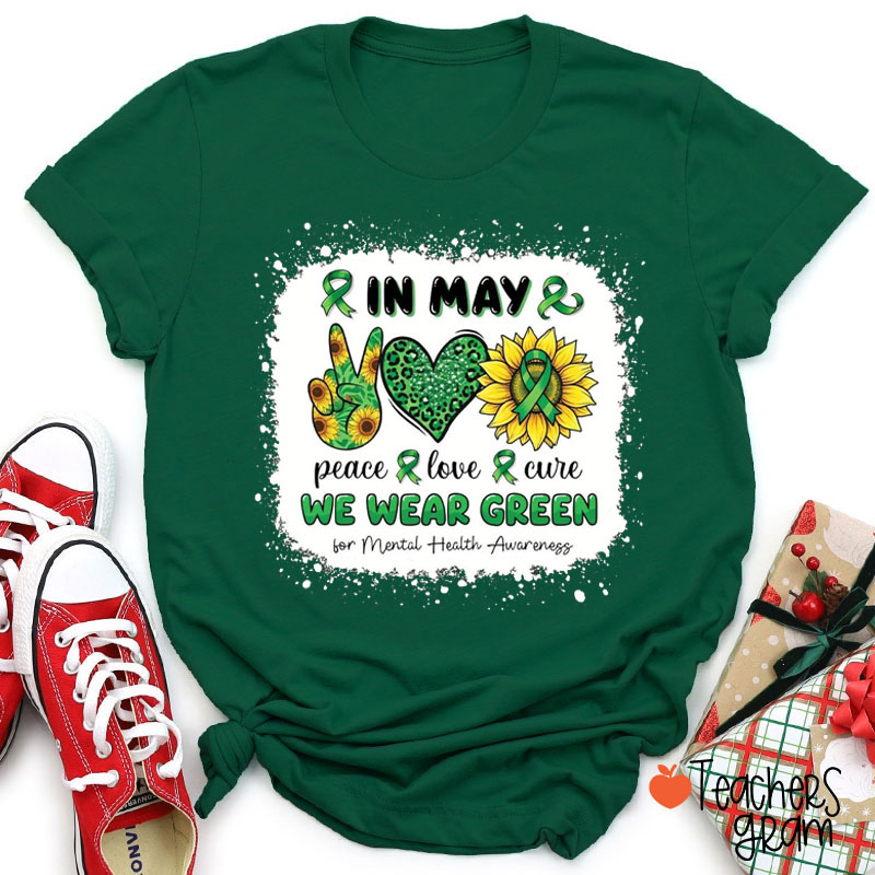 In May We Wear Green Peace Love Cure Teacher T-Shirt