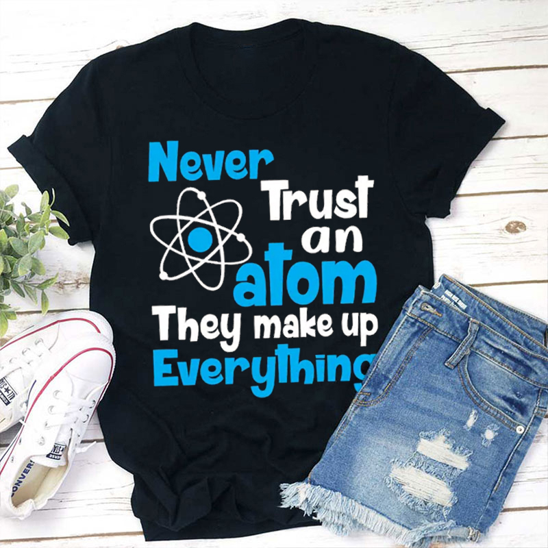 Never Trust An Atom They Make Up Everything Teacher T-Shirt