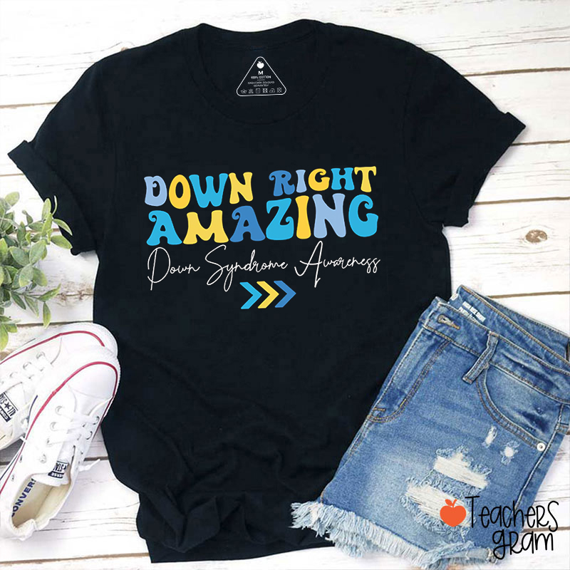 Down Right Amazing Down Syndrome Awareness Teacher T-Shirt