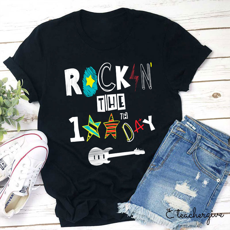 Rockin' The 100th Day Guitar Teacher T-Shirt