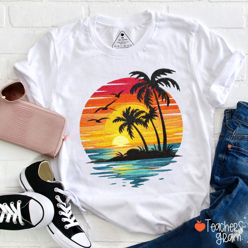 Beach Sunset Summer Vibes Teacher T-Shirt