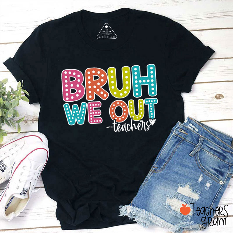 Vibrant Polka Dots Bruh We Out Teacher T-Shirt