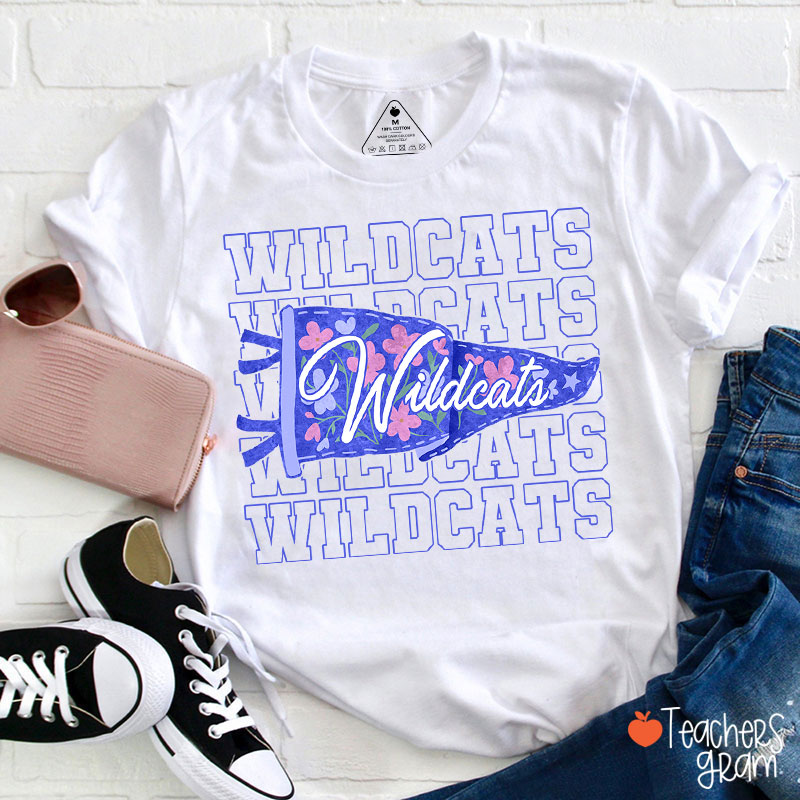 Personalized Mascot Flowers Pennant Teacher T-Shirt