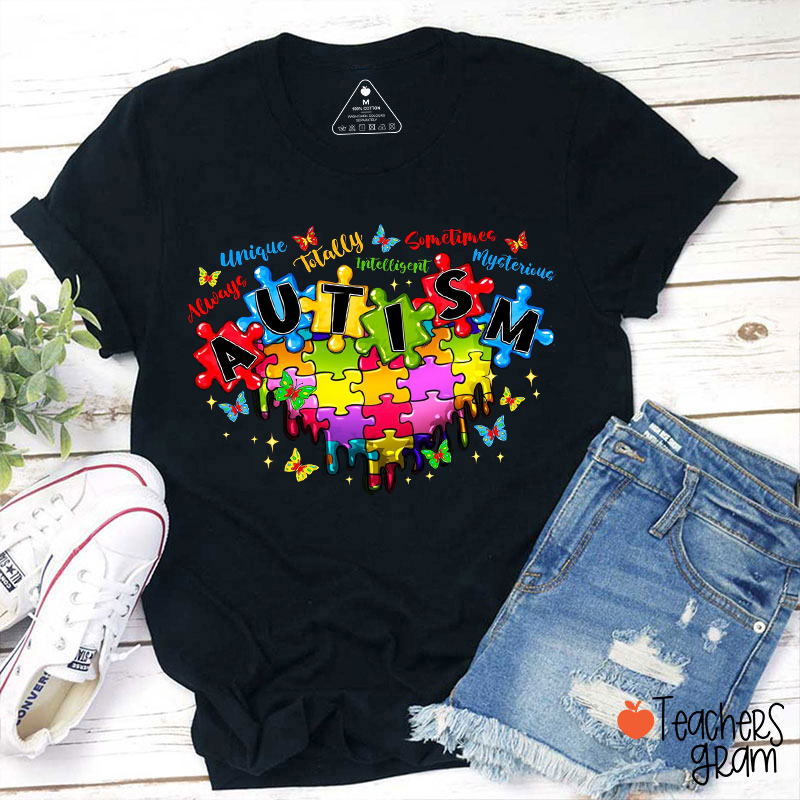 Autism Always Unique Totally Intelligent Sometimes Mysterious Teacher T-Shirt