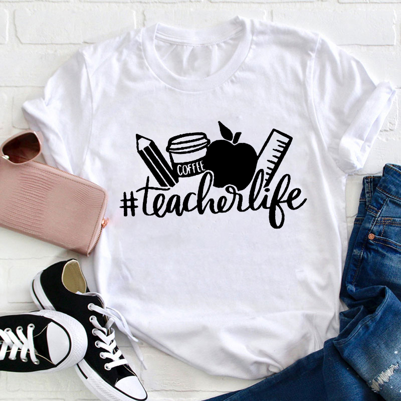 Flowers Pencil Apple Book Star Teacher T-Shirt