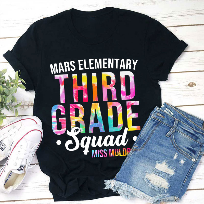 Personalized Tie Dye Style Name And Grade Teacher T-Shirt