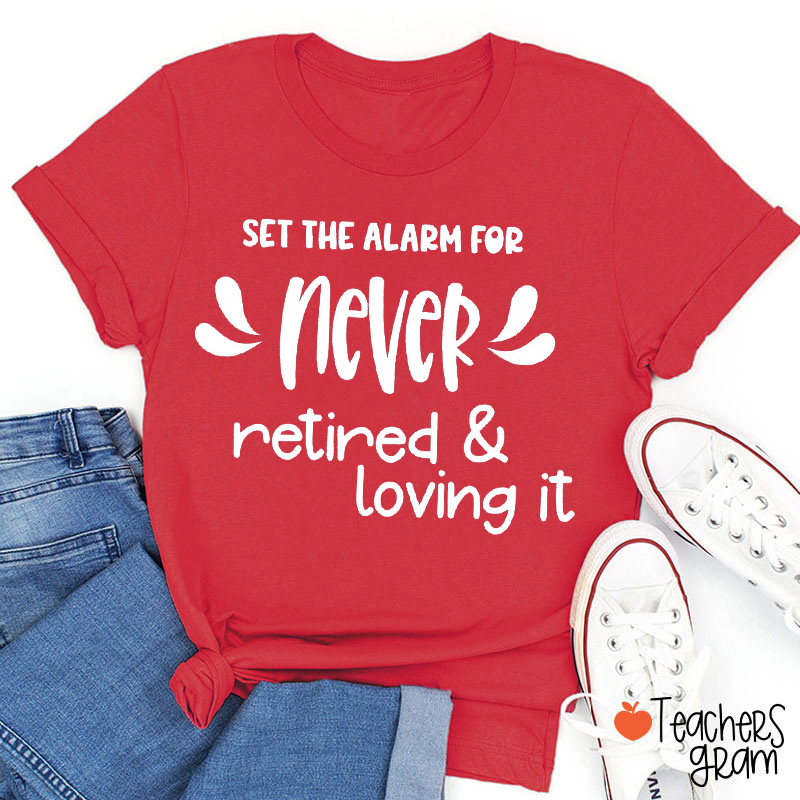Set The Alarm For Never Retired And Loving It Teacher T-Shirt