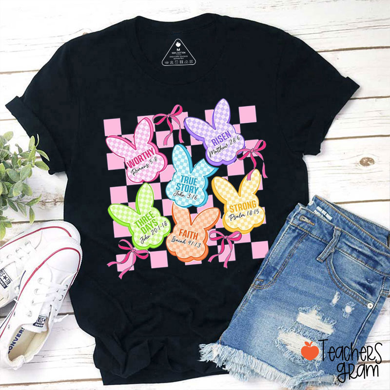 Bunny Checkered Quotes Easter Day Teacher T-Shirt
