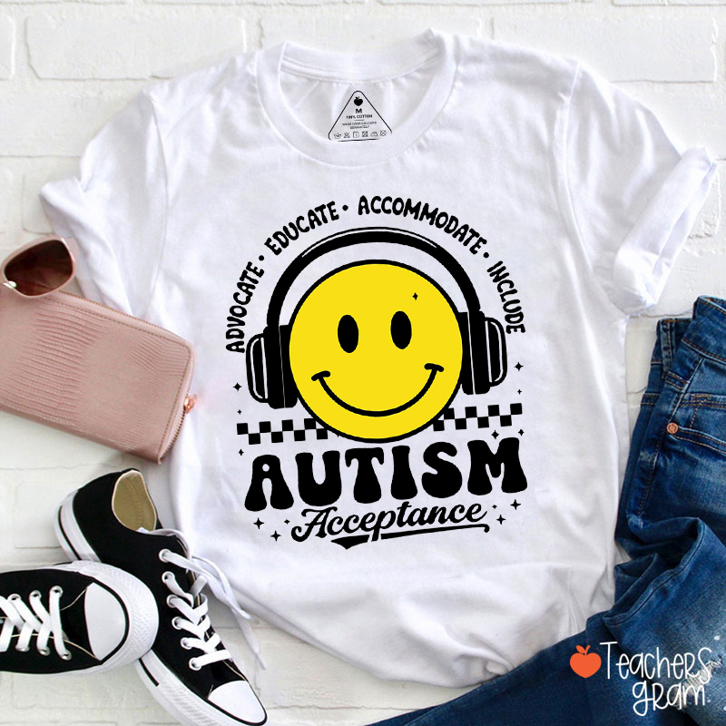 Advocate Educate Accommodate Include Autism Acceptance Teacher T-Shirt
