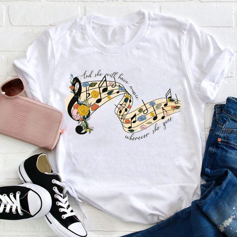 And She Will Have Music Wherever She Goes Teacher T-Shirt