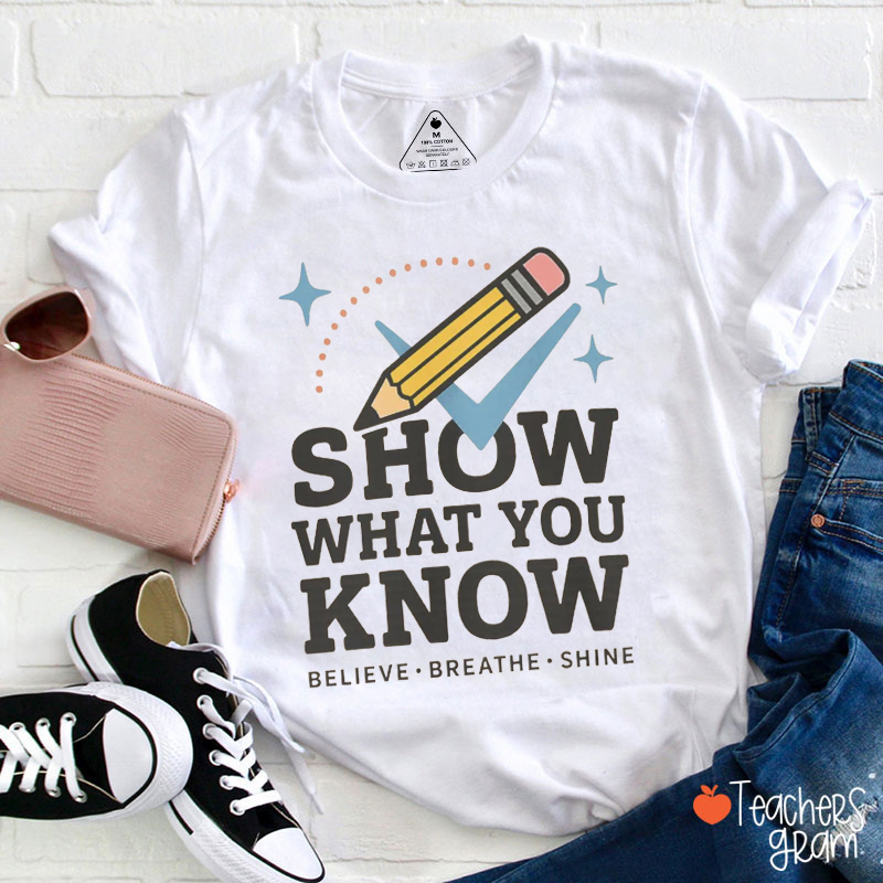 Show What You Know Believe Breathe Shine Teacher T-Shirt