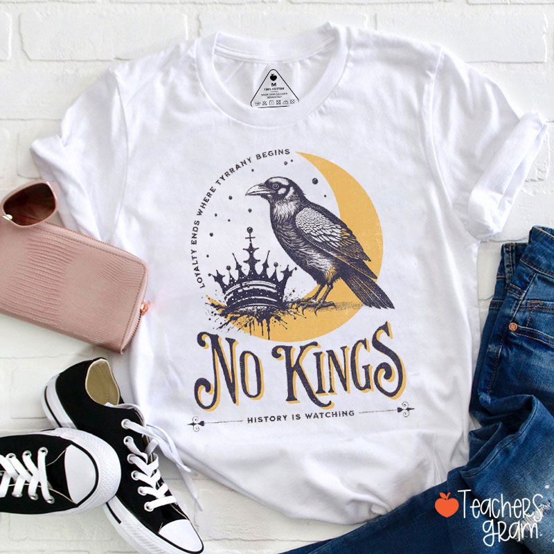 No Kings History Is Watching Loyalty Ends Where Tyranny Begins Teacher T-Shirt