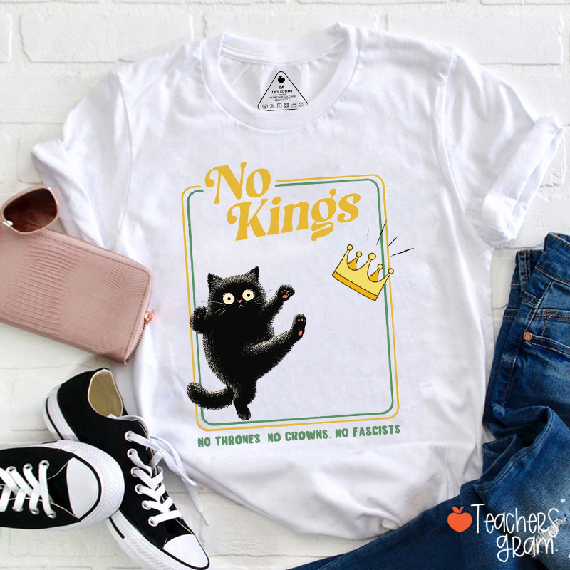 No Kings No Thrones No Crowns No Fascists Teacher T-Shirt