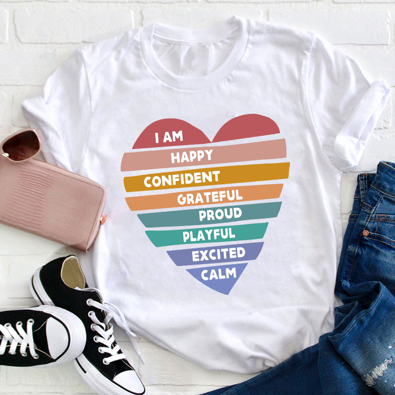 I Am Happy Confident Calm Excited Teacher T-Shirt