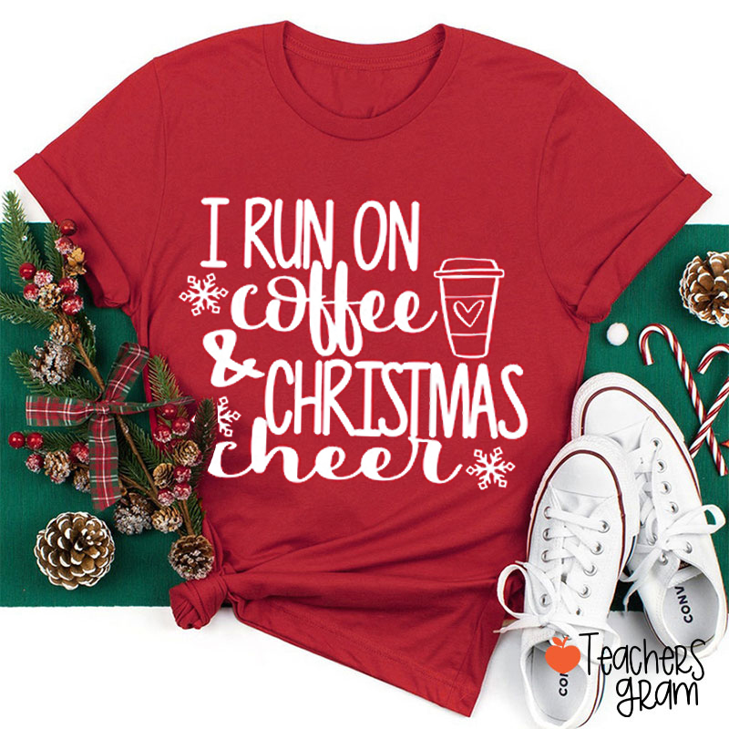 Simple Design I Run On Coffee And Christmas Cheer Teacher T-Shirt