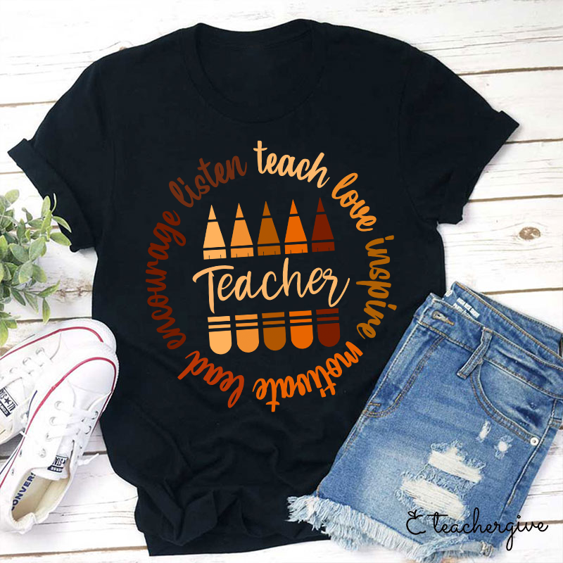 Teach Love Inspire Motivate Lead Encourage Listen Teacher T-Shirt