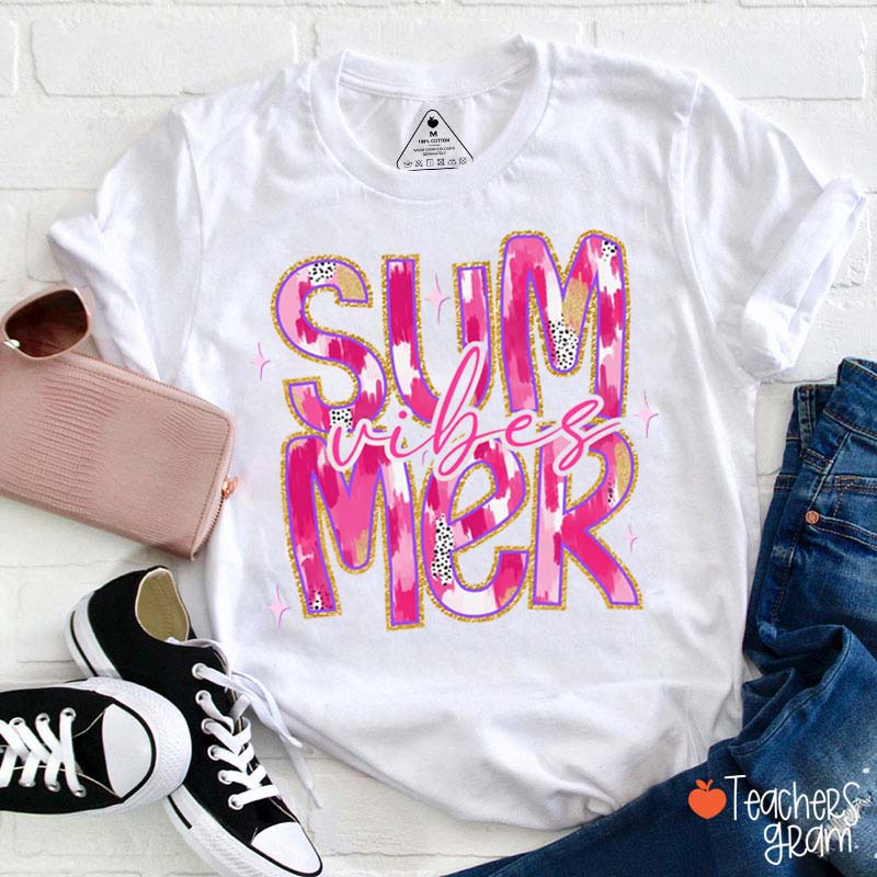 Summer Brushstroke Summer Vibes Teacher T-Shirt