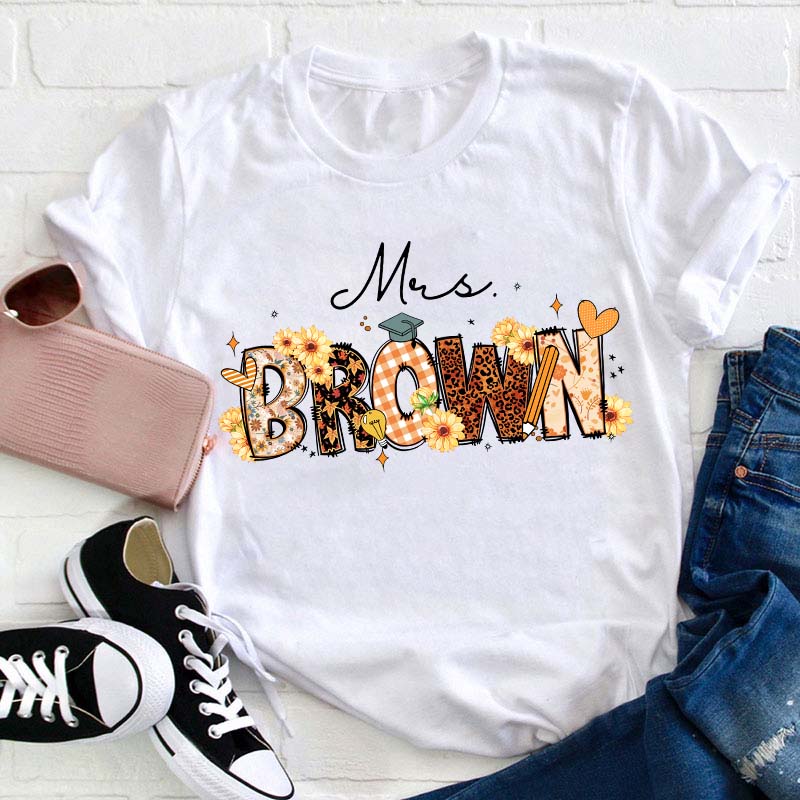 Personalized Name Cute Sunflower Teacher T-Shirt