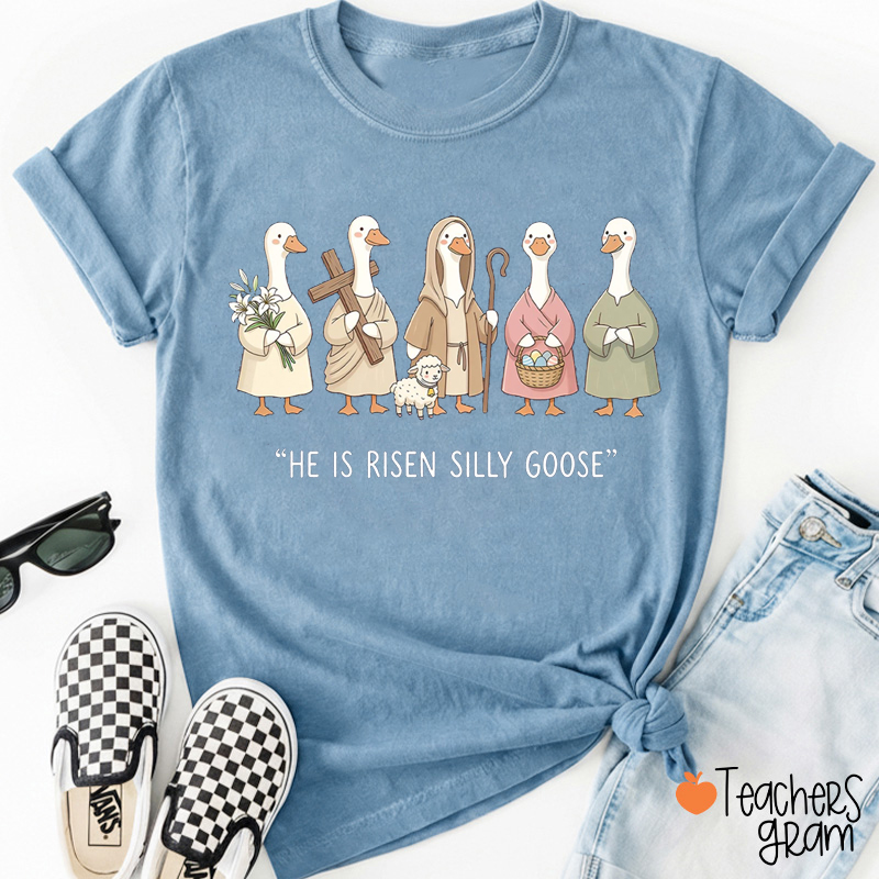 He Is Risen Silly Goose Easter Goose Teacher T-Shirt