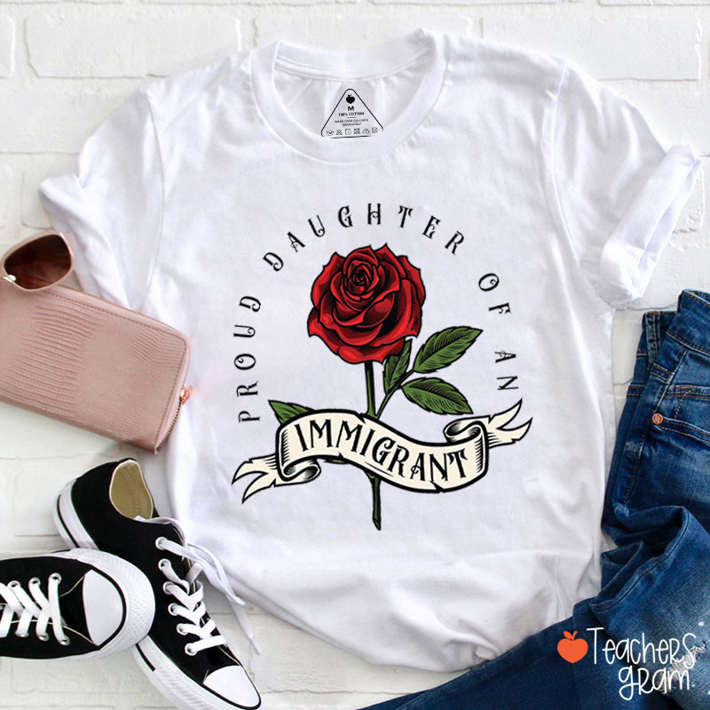 Big Rose Proud Daughter Of An Immigrant Teacher T-Shirt
