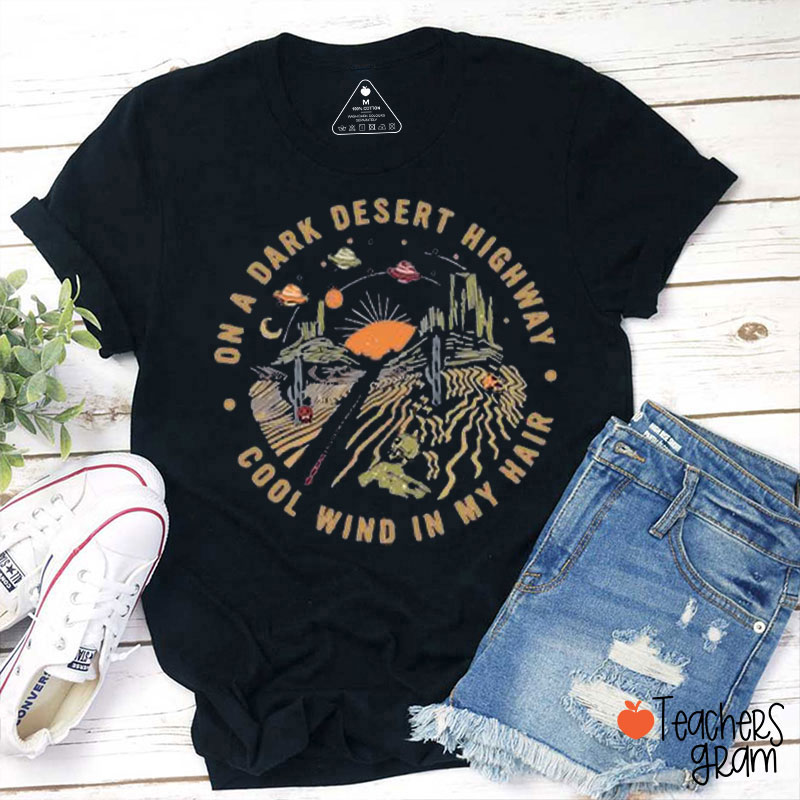 On A Dark Desert Highway Cool Wind In My Hair Teacher T-Shirt