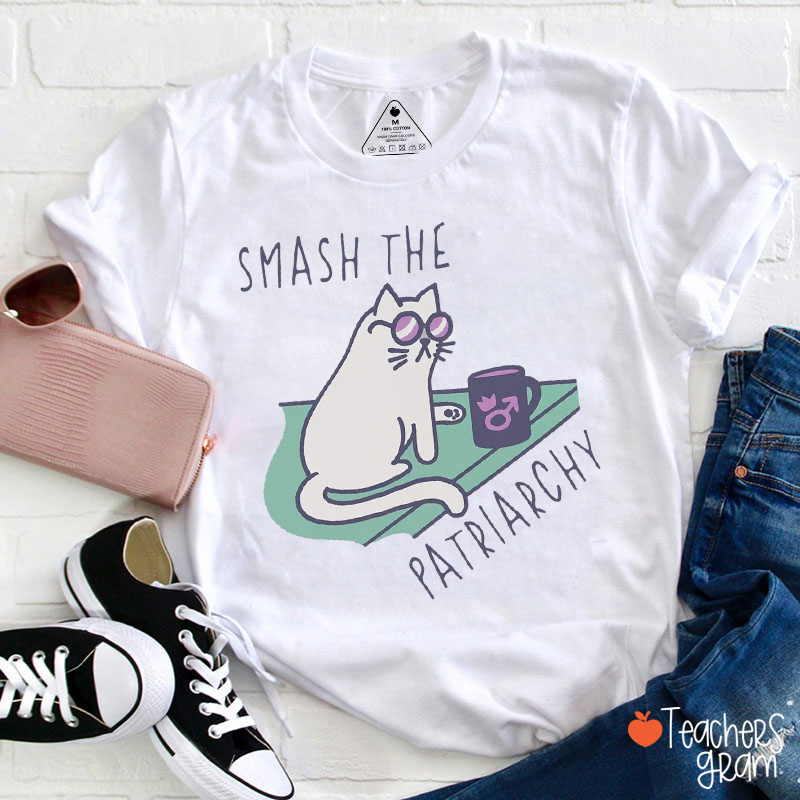 Smash The Patriarchy Cute Cat Teacher T-Shirt