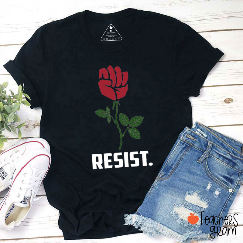 Feminist Fist Resist And Persist Teacher T-Shirt
