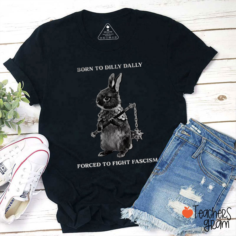Born To Dilly Dally Forced To Fight Fascists Rabbit Teacher T-Shirt